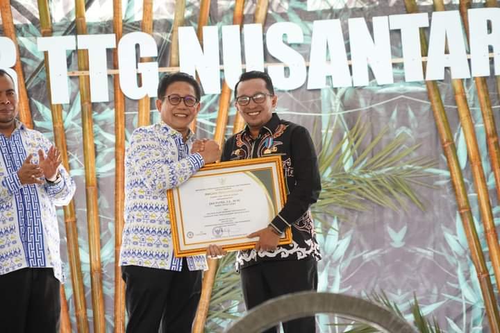 Mataram-NTB, Bupati Tanah Datar Eka Putra, SE, MM diganjar penghargaan dan dipasangkan lencana Bakti Inovasi Desa oleh Menteri Desa, Pembangunan Daerah Tertinggal dan Transmigrasi RI Abdul Halim Iskandar, pada saat pembukaan Gelar Teknologi Tepat Guna Nusantara (GTTGN) XXV tahun 2024 di Islamic Center NTB-Mataram, Senin siang (15/07/2024).
