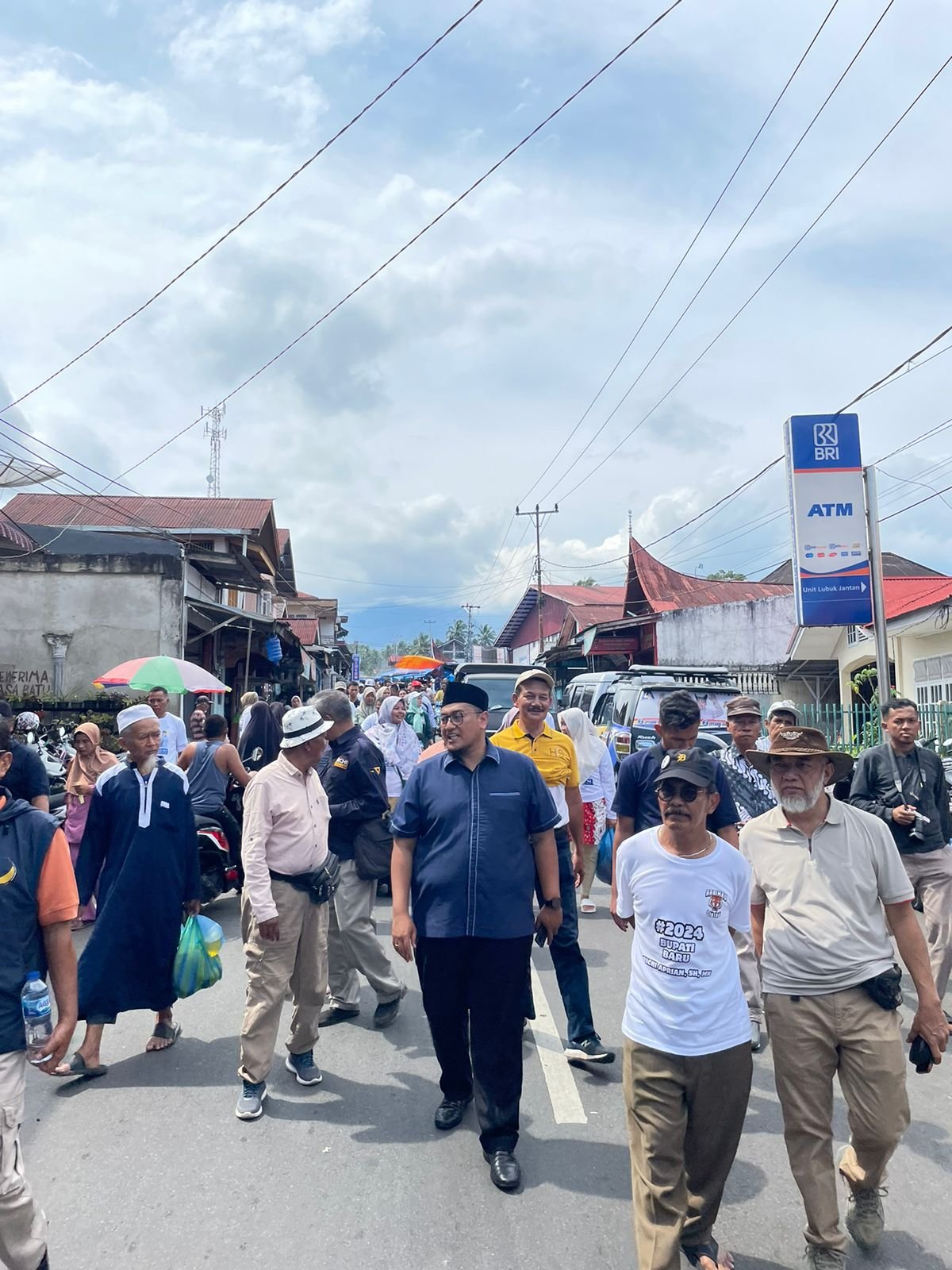 Calon Bupati Nomor urut 01 Richi Aprian dan Doni Karson lakukan kampanye blusukan ke pasar Balai Tangah, Nagari Balai Tangah Kecamatan Lintau Buo Utara, Kamis (17/10).