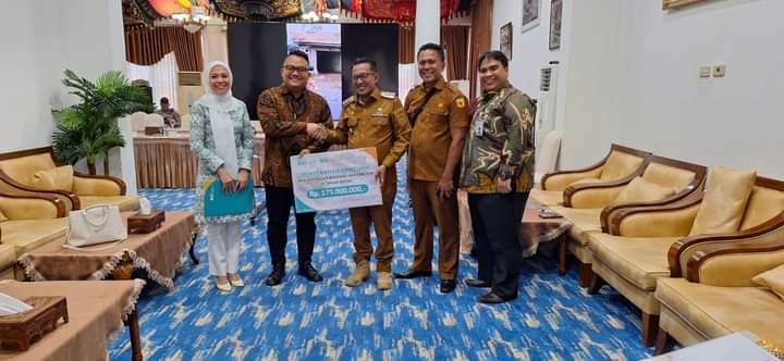 Bantuan diserahkan oleh Area Manager BSI Area Padang Agung Pramono didampingi Branch Manager BSI KCP Batusangkar Melia Fitri diterima langsung oleh Bupati Tanah Datar Eka Putra di Gedung Indojolito pada Selasa (21/5/2024).