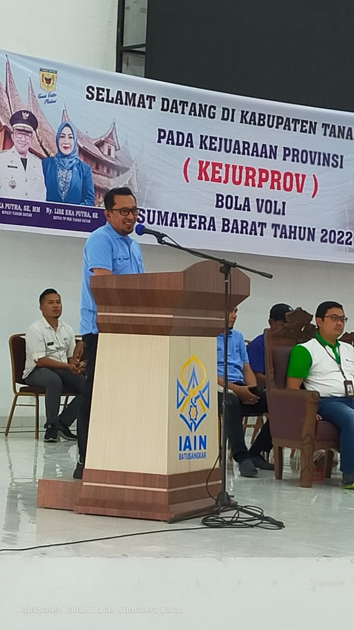 Bupati Tanah Datar, sekaligus sebagai Ketua PBVSI Sumatra Barat(Sumbar), membuka secara resmi Kejuaraan Provinsi (Kejurprov) PBVSI tahun 2022, digedung auditorium UIN Mahmud Yunus Batusangkar, Rabu(10/8).