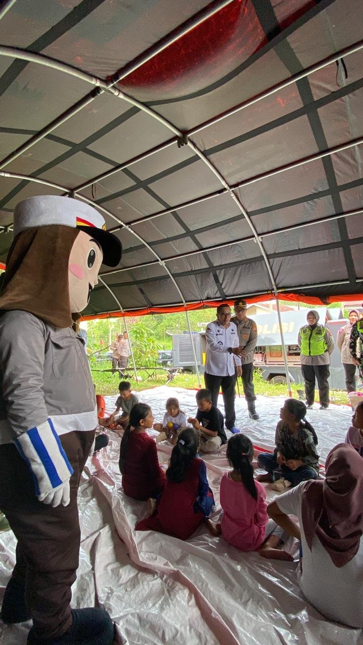 Dalam hal itu, Polres Tanah Datar membentuk sebuah Tim “Trauma Healing” yang mana ditujukan untuk meringankan beban Psikologis bagi masyarakat khususnya anak-anak yang terdampak dari Bencana Alam Banjir Bandang tersebut.