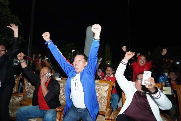 Bupati Tanah Datar Eka Putra yang ikut Nonton Bareng (Nobar) bersama Forkopimda menyampaikan apresiasi dan terima kasih atas begitu tingginya animo masyarakat Tanah Datar mendukung timnas.