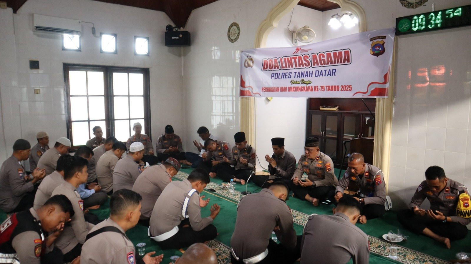 Polres Tanah Datar memperingati Hari Bhayangkara ke-79 Tahun 2025 dengan menggelar Doa Bersama lintas agama bertema “POLRI UNTUK MASYARAKAT” di Polres Tanah Datar, Kamis pagi (19/6).