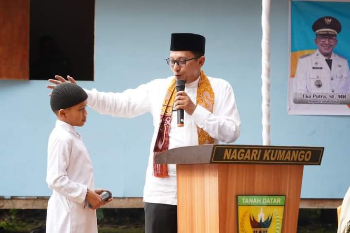 Bupati Tanah Datar Eka Putra, SE, MM didampingi isterinya Ny Lise Eka Putra, Kamis (14/7/2023) kunjungi Yayasan Istana Yatim Assyifa, Dusun Tuo Kumango Selatan, nagari Kumango kecamatan Sungai Tarab. Kunjungan tersebut dilakukan dalam rangka menghadiri kegiatan Jumat Curhat Bersama Santri setempat.