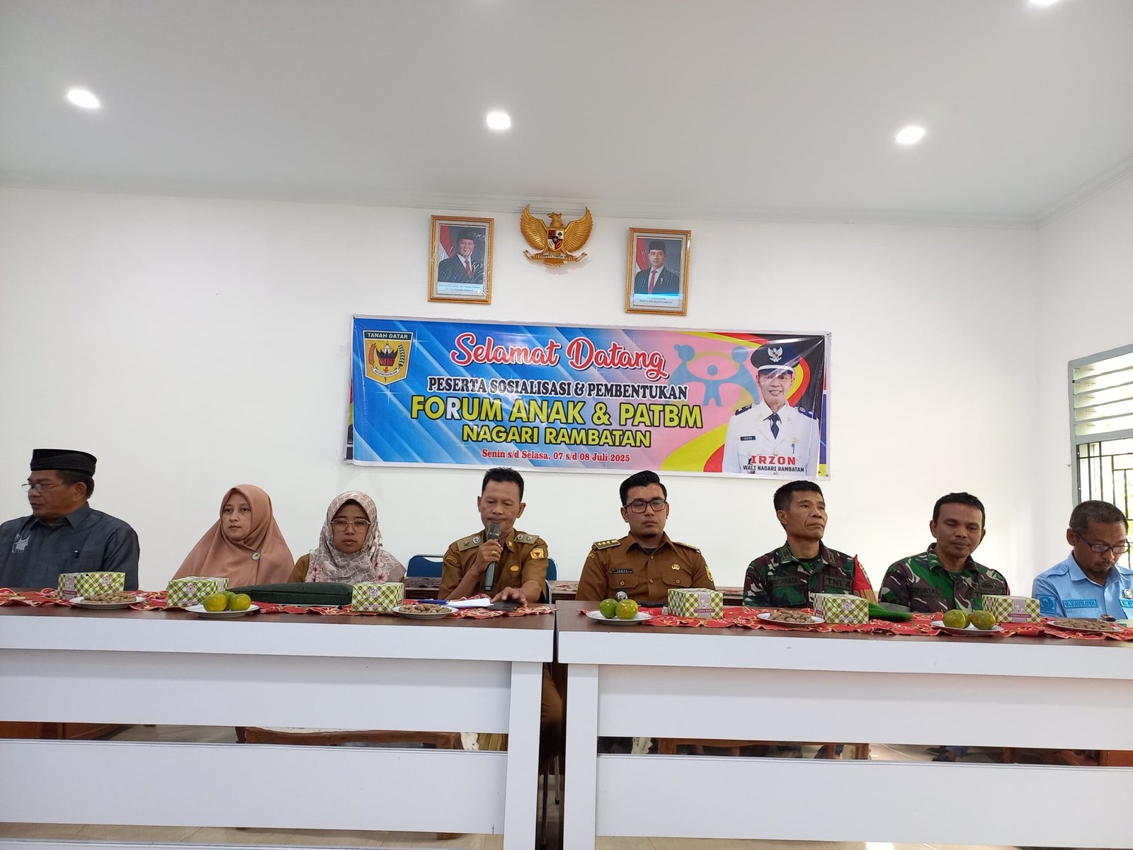 Pemerintah nagari Rambatan gelar sosialisasi dan pembentukan Forum Anak dan PATBM nagari Rambatan. Sosialisasi tersebut dilakukan selama 2 hari yang bertempat di aula kantor wali nagari setempat, Senin (07/07/2025).