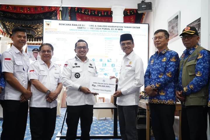 Dikesempatan tersebut, Safaruddin juga menyampaikan niat kehadirannya bersama rombongan tidak lain untuk secara langsung memberikan bantuan sebesar Rp 100 juta dari ASN, masyarakat dan pihak lainnya sebagai bentuk kepedulian terhadap masyarakat Tanah Datar yang terdampak bencana alam.